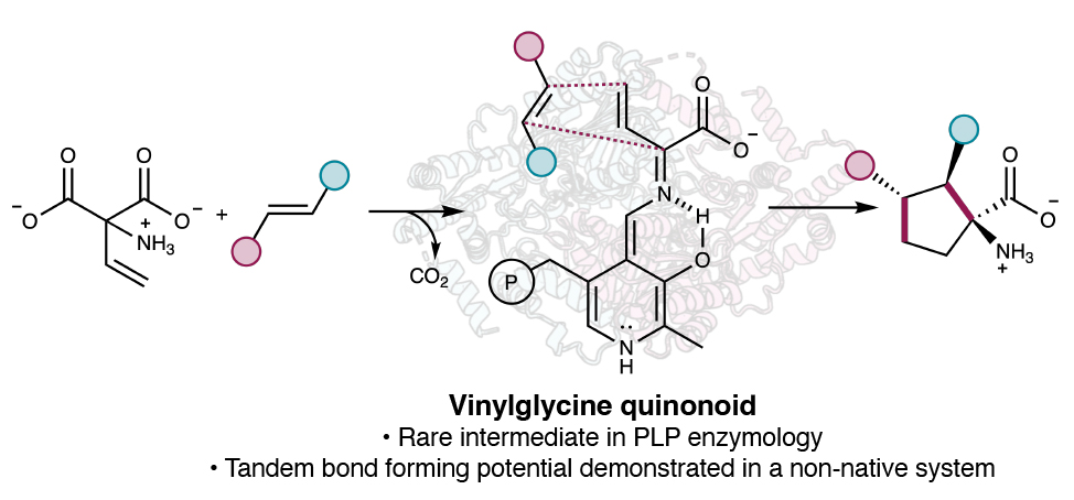 26. Gao J,# Liu S,# Zhou C, Lara D, Zou Y,* and Hai Y* (2023) A pyridoxal 5′-phosphate-dependent Mannich cyclase. Nat. Catal. 6, 476-486. LINK